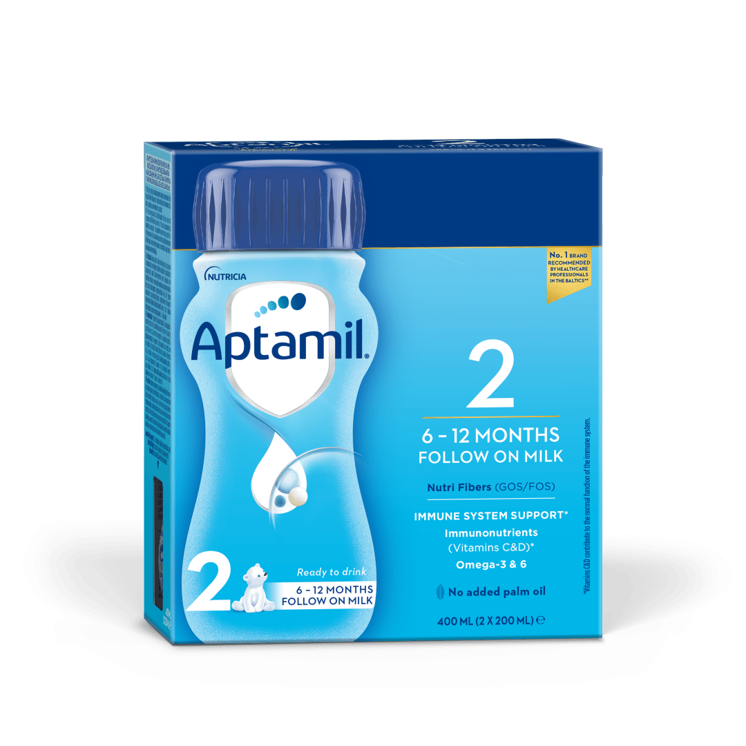 Aptamil® 2 piimal põhinev imiku jätkupiimasegu alates 6 kuust, kasutamisvalmis.