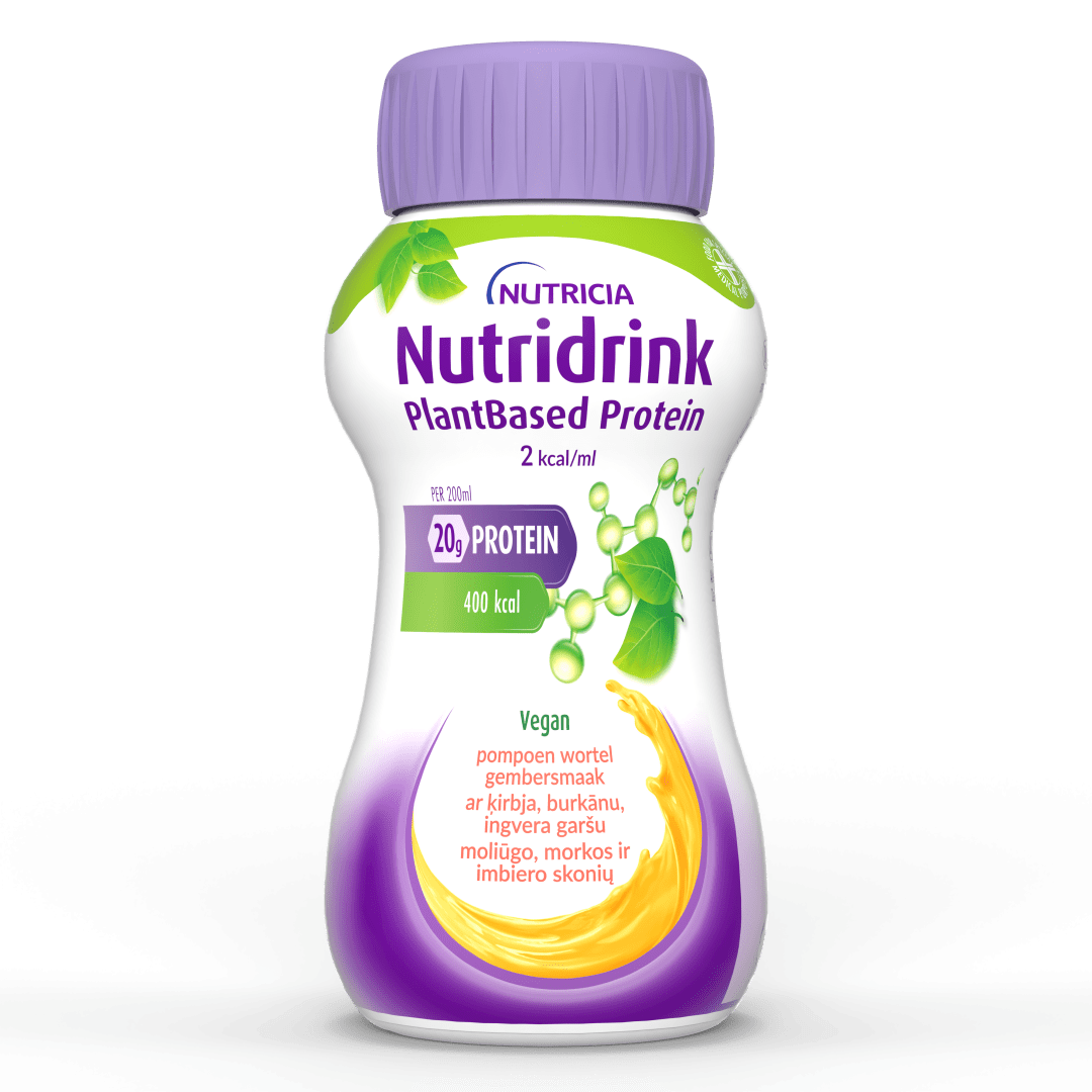 Meditsiinilisel näidustusel kasutamiseks ettenähtud toit. Dieetraviks haigusest tingitud alatoitumuse korral. Nutridrink PlantBased Protein 2 kcal/ml on energia- ja valgurikas toitaineliselt täisväärtuslik jook, mis sisaldab herne ja sojavalku, sobib ka veganitele. Laktoosivaba. Gluteenivaba.